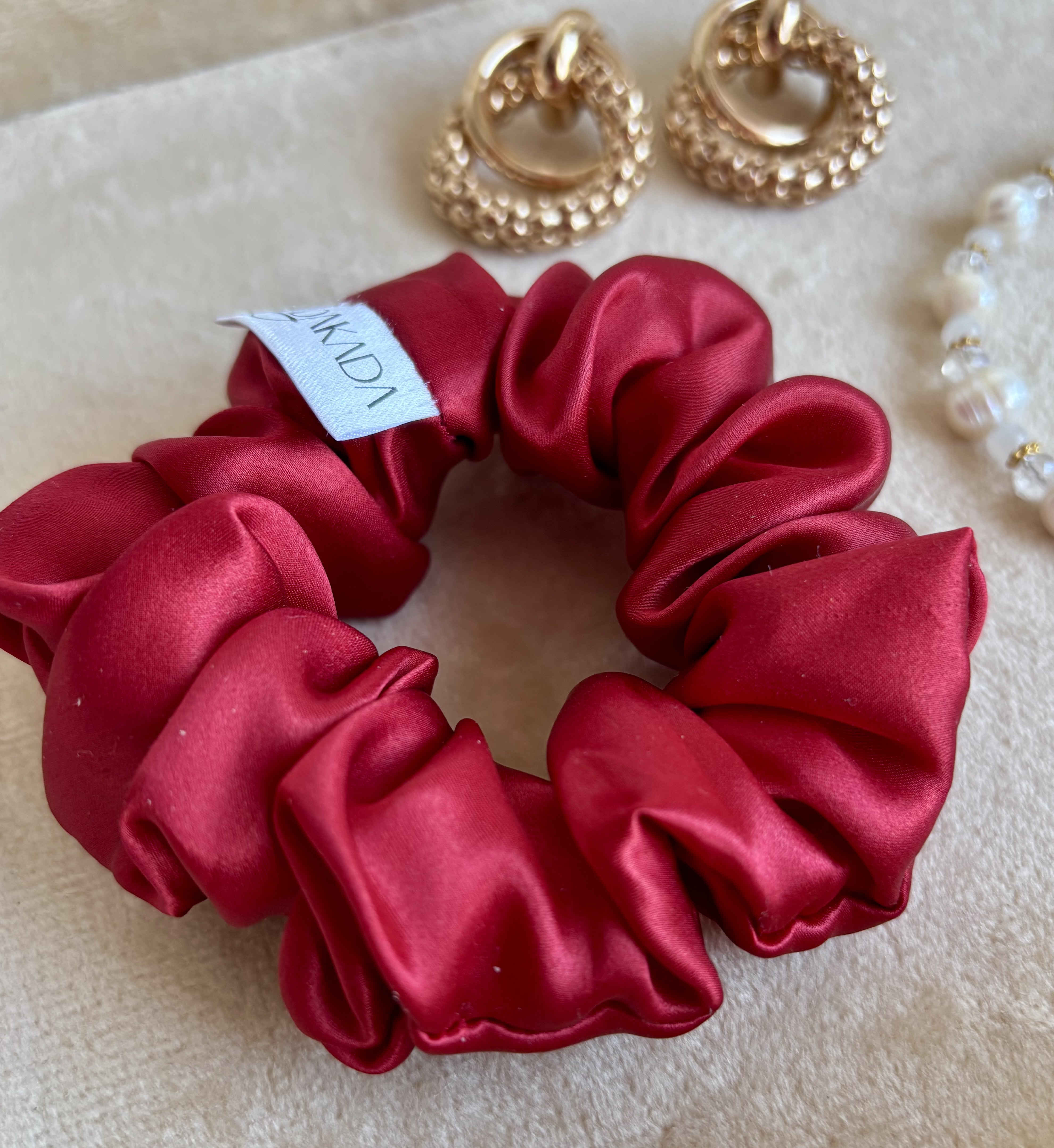 Ryški raudona šilkinė plaukų gumelė, suteikiančia stilingą akcentą. Švelnus, bet tvirtas laikymas nespaudžia ir nepeša plaukų – tinkama net linkusiems lūžinėti plaukams. Derinama prie įvairių stilių ir plaukų atspalvių. Pagaminta iš 100 % šilko.